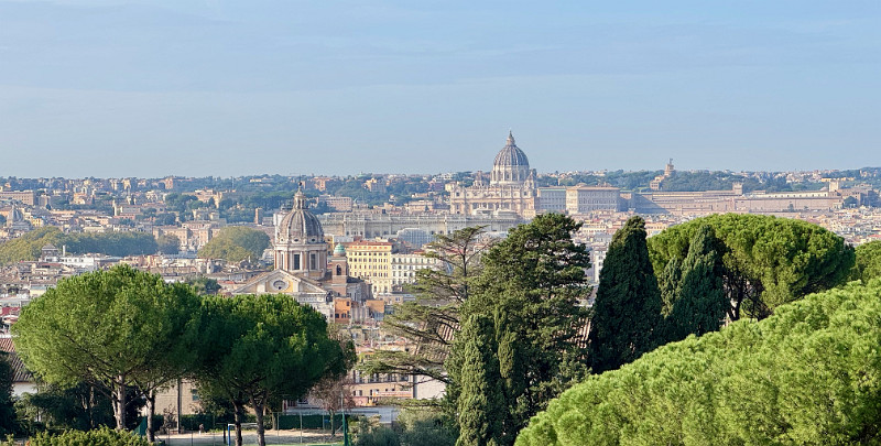 View from Breakfast, Rome Sofitel Roma Villa Borghese; St. Peter's in midground